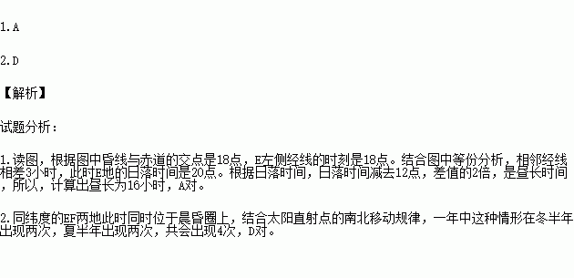 2.同纬度的EF两地此时同时位于晨昏圈上,一年中这种情形会出现