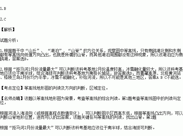 下图为我国某科考基地附近等高线地形图,图中拒马河2月份流量最大。据此回答下列问题。