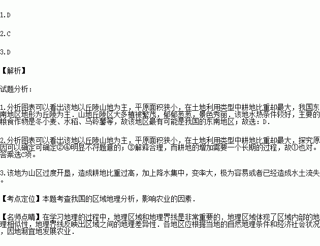 3.该地区耕地比重过高,最容易引发的环境问题主要是