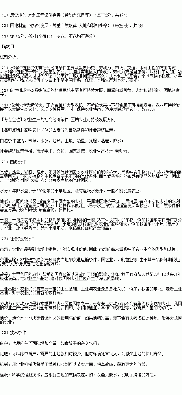 (1)当地发展水稻种植业的优势社会经济条件有 、 等。