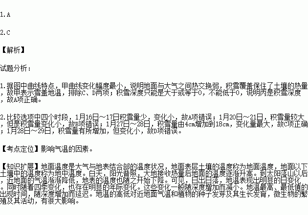 1.图中表示积雪深度、雪盖地温、无雪地温变化的三条曲线依次是( )