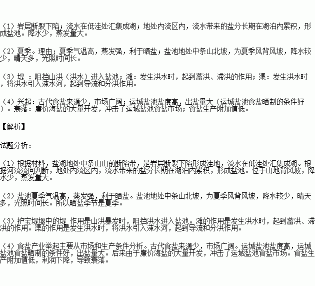(2)判断运城盐池晒盐的主要季节并说明理由。