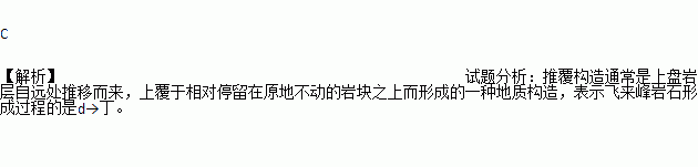 推覆构造通常是上盘岩层自远处推移而来,上覆于相对停留在原地不动的岩块之上而形成的一种地质构造。读某推覆构造示意图(左图)地壳物质循环示意图(右图),右图中表示飞来峰岩石形成过程的是( )