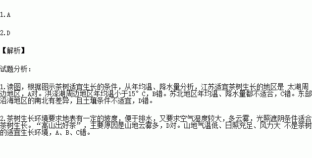 1.江苏适宜茶树生长的地区是