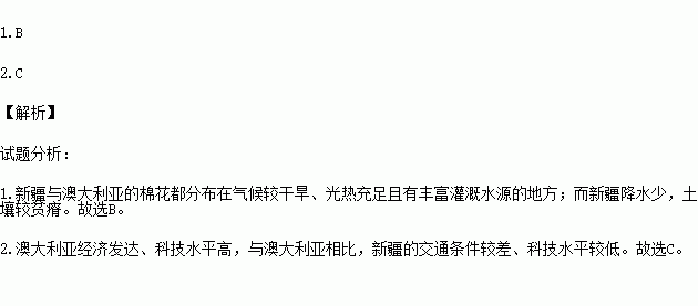 1.新疆与澳大利亚棉花生长共同的有利自然条件是( )