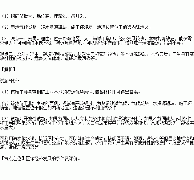 (1)分析纳米比亚在甲地建设国际铜矿工业基地的资源优势条件