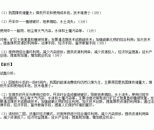 材料二:目前煤炭仍为我国的主要能源,针对煤炭在开发利用过程中的环境问题,鄂尔多斯地区某工业园区按照循环经济的发展理念构筑了如下产业链。
