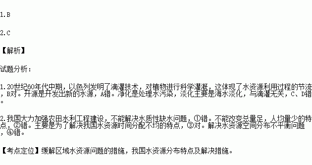 1.20ÊÀ¼Í60Äê´úÖÐÆÚ£¬ÒÔÉ«Áз¢Ã÷Á˵ι༼Êõ£¬ÕâÌåÏÖÁËË®×ÊÔ´ÀûÓùý³ÌµÄ£¨ £©