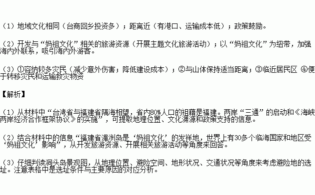 (1)说明台商投资区集中在福建省福州、厦门等城市的原因。