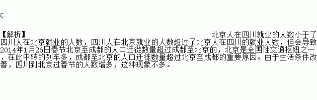 2014年1月26日百度数据显示,成都至北京的人口迁徙数量超过北京至成都的,试推断其原因( )