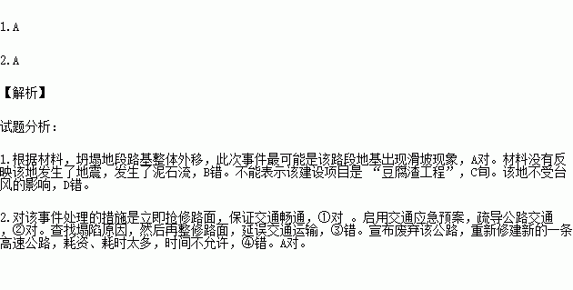 A.该路段地基出现滑坡现象 B.该地发生了地震,导致泥石流