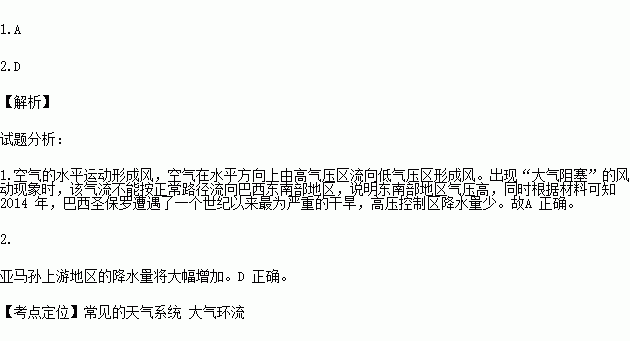 2014 Ä꣬°ÍÎ÷Ê¥±£ÂÞÔâÓöÁËÒ»¸öÊÀ¼ÍÒÔÀ´×îΪÑÏÖØµÄ¸Éºµ¡£¿ÆÑ§¼ÒÈÏΪ£¬Ò»ÖÖ½Ð×ö¡°´óÆø×èÈû¡±µÄ·ç¶¯ÏÖÏó¸Ä±äÁËÄÏÃÀÖÞ·çµÄÕý³£Â·¾¶¡£ÏÂͼΪ´óÆøÔ˶¯ÊÜ×èÈûǰºó¡°Õý³£Â·¾¶Óë´óÆø×èÈû·¾¶Ê¾Òâͼ¡±£¬»Ø´ðÏÂÁÐÎÊÌâ¡£