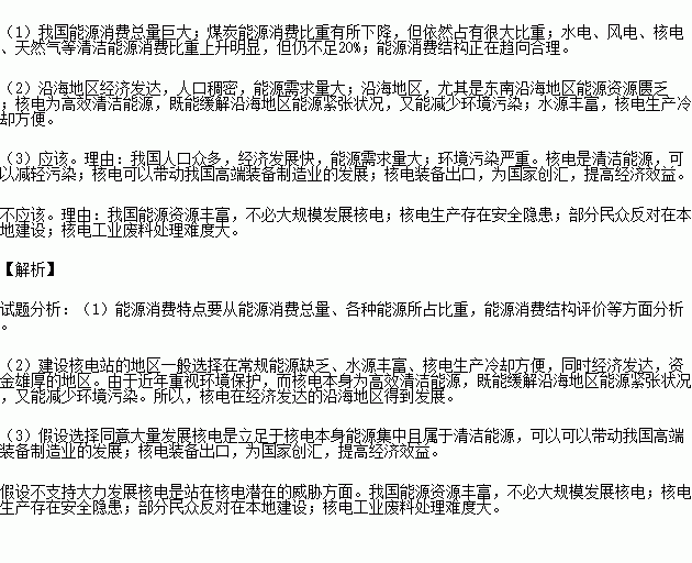 (3)对于我国今后是否应该大力发展核电,请说出自己的观点,并阐明理由。