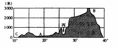 读某大陆沿5°S地形剖面图(横坐标为经度,纵坐标为海拔),完成16—17题。