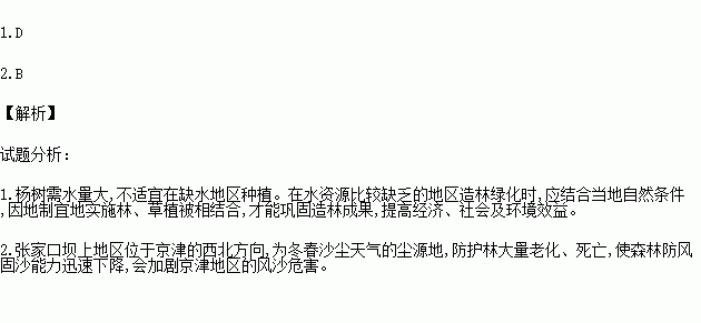 1.从生态的角度分析,目前针对张家口坝上地区的杨树出现大面积死亡情况应采取的最合理的措施是