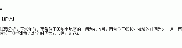 读我国雨带移动示意图,通常年份,当雨带位于①、②、③时,分别是