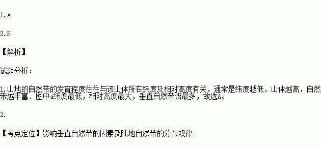 1.由图中四座山峰位置及海拔可知,垂直自然带数目最多的位于