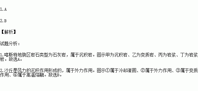 1.喀斯特地貌区岩石类型属于图中的 ( )
