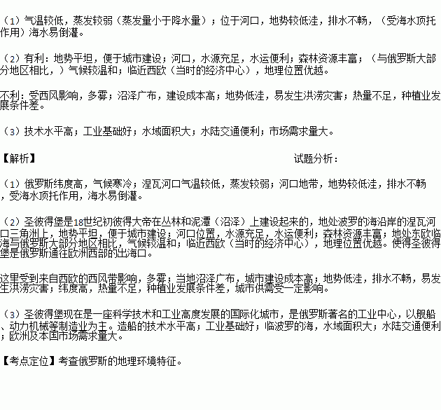 (2)评价18世纪初圣彼得堡建城的条件。