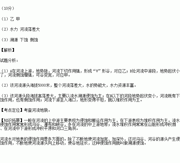 (3)该河源头主要以流水________侵蚀为主,在B以下的河段既有________(侵蚀)作用,也有________(侵蚀)作用。