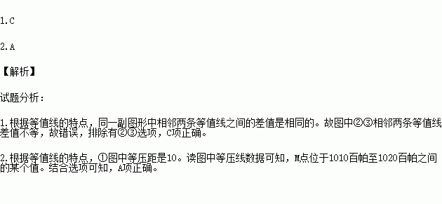 2.①图中M处气压值可能为( )