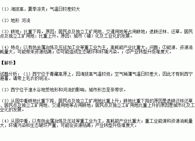 (2)西宁的城市形态呈条带状,主要受 、 等自然因素的影响。