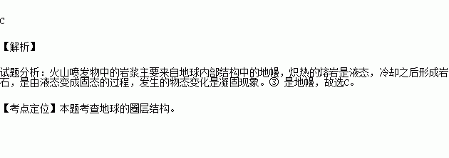 该火山喷发的物质来自右面地球圈层结构图中的