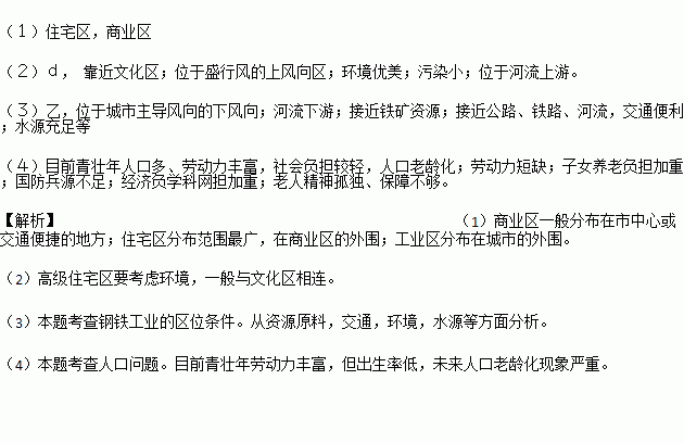(2)a、b、c、d四个宜建高级住宅区的是 ,原因是 。