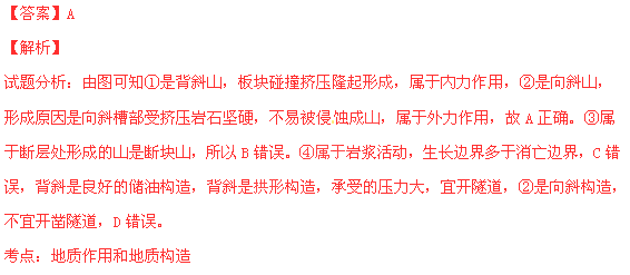 A. ① ②地形形成的主要地质作用分别为内力作用和外力作用