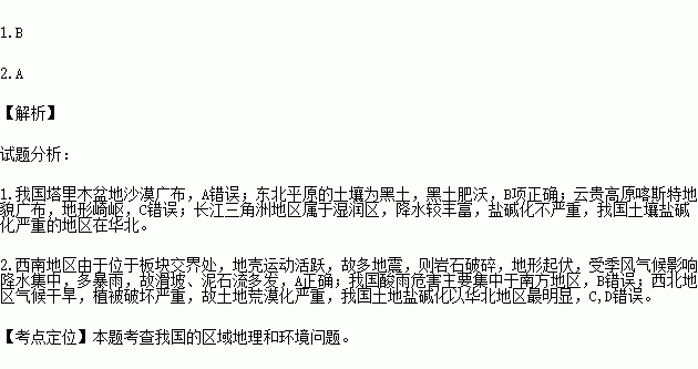 2.下列关于我国不同地区环境问题的叙述,正确的是( )