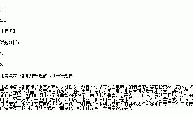 A.甲山海拔较乙山高 B.甲山降水较乙山少