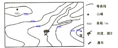 图为“我国南方某小区域地形图”,图中等高距为100米,瀑布的落差为62米,据此完成问题。