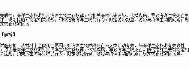 试分析海洋生物成群死亡与海洋生态旅游的关联性,并提出防治措施。