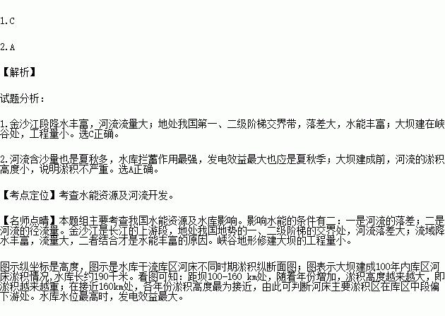 °×º×̲ˮµçÕ¾Êǽðɳ½ÏÂÓÎËĸöÌݼ¶Ë®µçÕ¾Öеĵڶþ¼¶£¬ÉϽÓÎÚ¶«µÂÌݼ¶£¬ÏÂÓÎΪϪÂå¶ÉÌݼ¶ºÍÏò¼Ò°ÓÌݼ¶Ë®µçÕ¾£¬ÊÇÎÒ¹úʵʩÎ÷µç¶«ËÍÕ½ÂÔ²¿ÊðµÄÖØµã¹¤³Ì¡£ÏÂͼ±íʾ´ó°Ó½¨³É100ÄêÄÚ¿âÇøºÓ´²ÓÙ»ýÇé¿ö(Êý×ÖÄ£ÐÍ),Ë®¿â³¤Ô¼190ǧÃס£¶Á¡°°×º×̲ˮ¿â¸ÉÁ÷¿âÇøºÓ´²²»Í¬Ê±ÆÚÓÙ»ý×ݶÏÃæÍ¼¡±£¬»Ø´ðÏÂÌâ