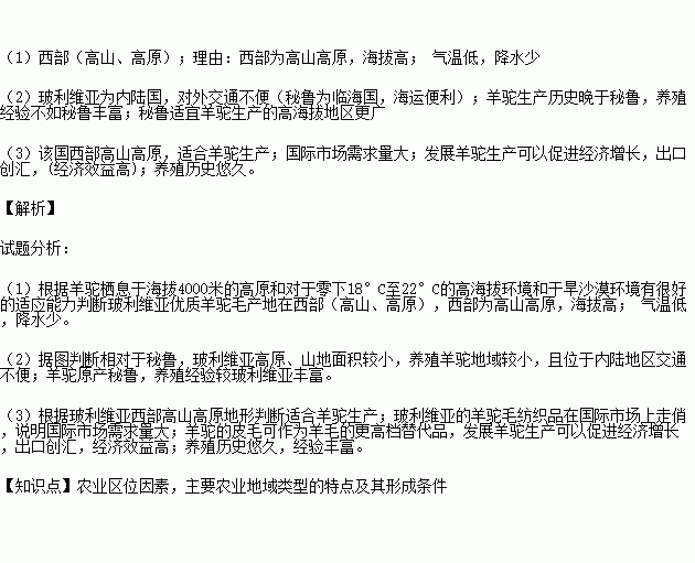 (1)根据羊驼的生长习性,判断玻利维亚优质羊驼毛产地并说明理由。