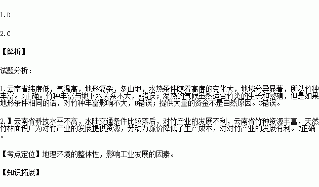 1.ÔÆÄÏÊ¡ÖñÖַḻµÄ×ÔÈ»ÔÒò¿ÉÄÜÊÇ£¨ £©