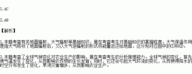 1.二氧化碳含量增多,导致大气对地面保温作用增强,下列数字所示环节与大气保温作用直接相关的有( )