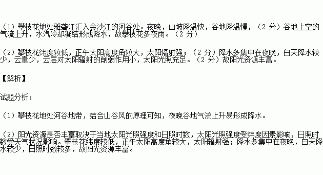 攀枝花拥有独特的阳光气候资源:年平均气温19℃-21℃,全年日照2300-2700小时。攀枝花的短时强降水呈现出显著的日变化特征,夜间多,白昼稀少,最高峰是在0:00到5:00.下图为我国西南地区局部图。