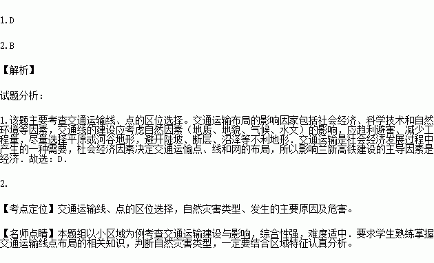 2. 影响兰新高铁安全运行的主要自然灾害是( )