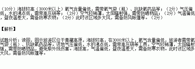 指出为应对旅游地自然环境的特殊性,他们需要携带的生活用品,并说明理由。