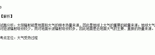 ①太阳辐射能是地球上大气最重要的能量来源 ②地球大气对太阳短波辐射吸收较多