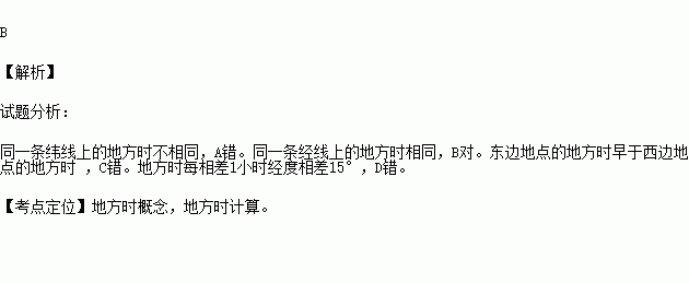 关于地方时的说法,正确的是( )