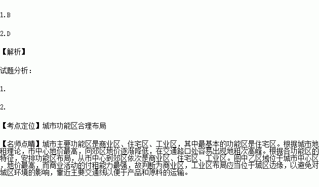 2.图中①②③④四个住宅小区,若楼高和采光条件相同,楼间距最小的是