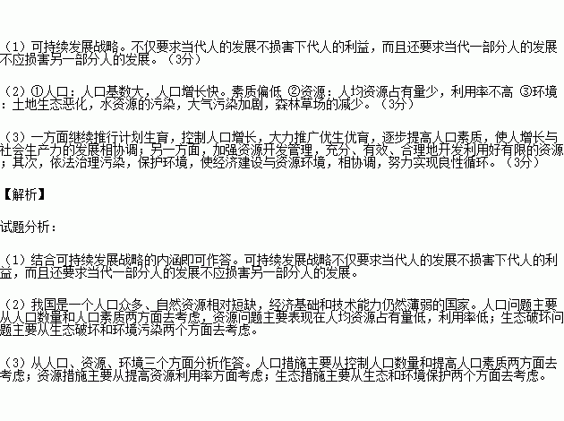 £¨1£©ÉÏÊö²ÄÁϹ²Í¬ËµÃ÷ÁËÎÒ¹úÕþ¸®ÔÚÈ˿ڡ¢×ÊÔ´¡¢»·¾³ÎÊÌâÉÏÕýÔÚ»ý¼«ÊµÊ©Ê²Ã´Õ½ÂÔ£¿ÕâÒ»Õ½ÂÔÓÐÄÄЩ»ù±¾ÒªÇ󣿣¨3·Ö£©