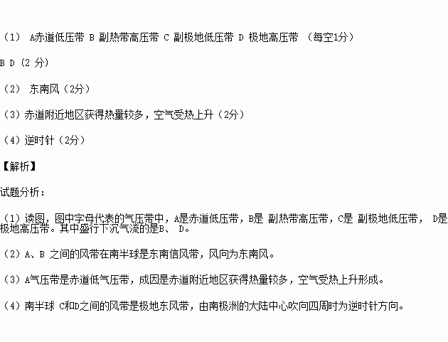 (4)南半球C和D之间的风带由南极洲的大陆中心吹向四周时为 (逆或顺)时针。
