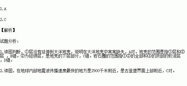 读地球内部圈层结构的局部图和地球内部地震波传播速度图.读图回答下列各题。