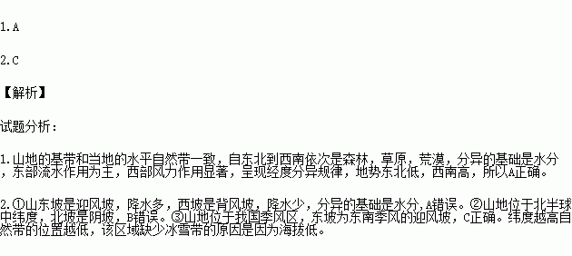 下图示意我国某地区主要山脉垂直带谱。读图完成以下各题。