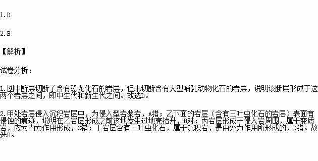 1.图中断层最可能发生于下列哪个地质时期 ( )