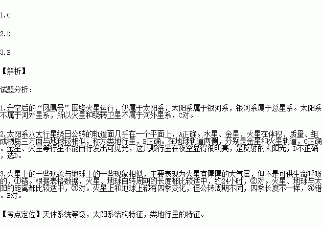 1.升空后的“凤凰号”不属于下列哪个天体系统的天体