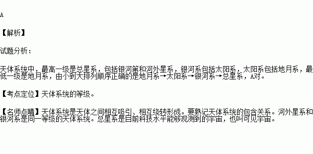 下列天体系统的层次,由小到大排列顺序正确的是( )